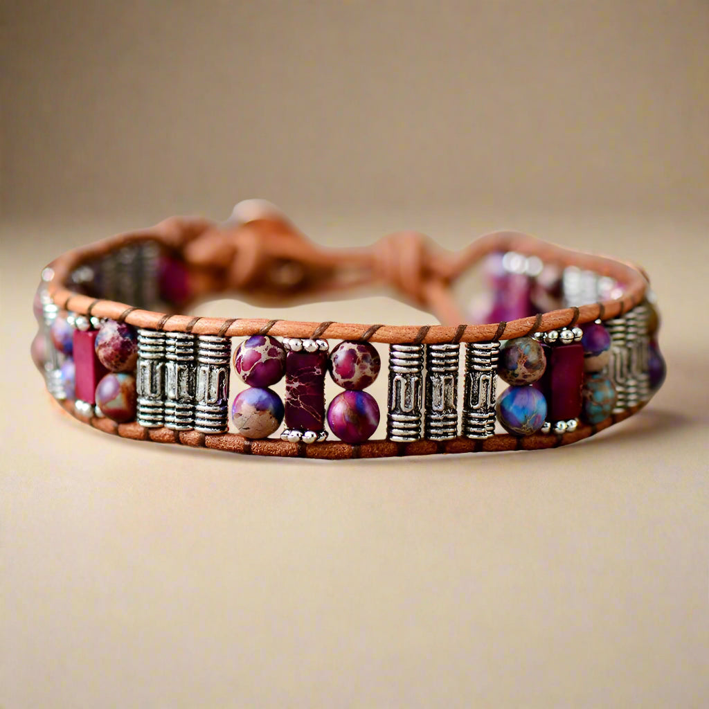 Drawing from Gypsy and Tibetan styles, this bracelet is a harmonious blend of nature and artistry.