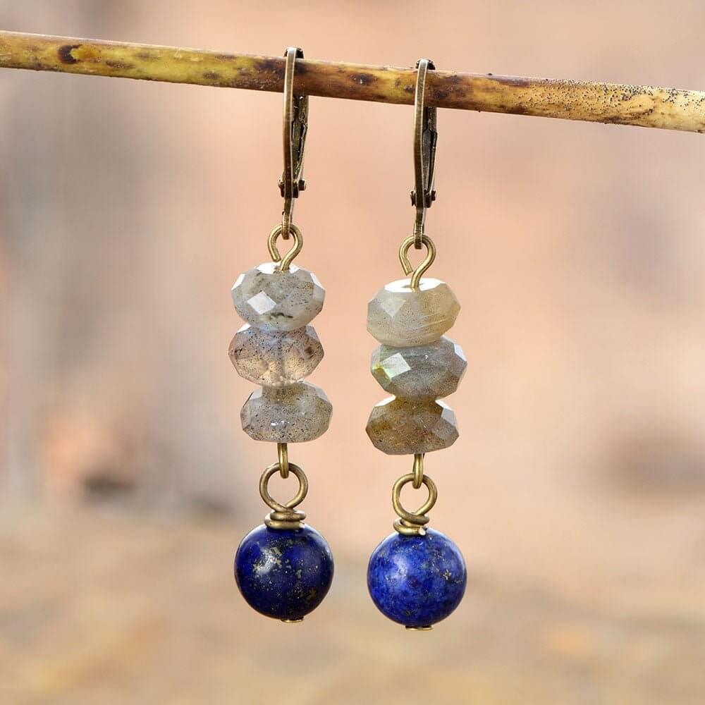Hermosos pendientes hechos a mano con piedras naturales facetadas de labradorita y lapislázuli.