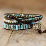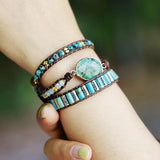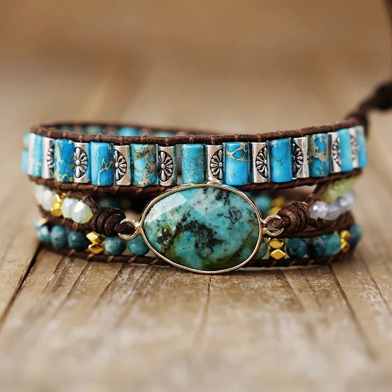 Attirez la couleur et le bonheur dans votre vie en portant notre bracelet enroulé en édition limitée. Est fait à la main avec du jaspe naturel et un mélange de perles de cristal. Il comporte une magnifique pièce maîtresse multicolore Jasper. Se ferme facilement grâce à un bouton vintage de forme ronde.