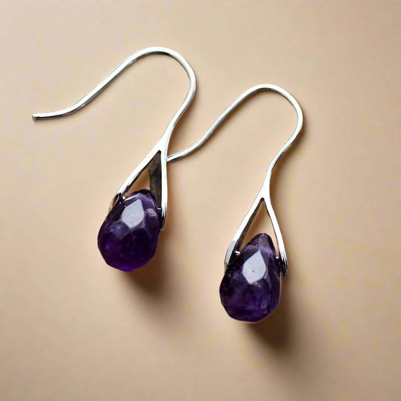 Questo paio unico di orecchini a goccia è uno dei nostri pezzi più amati e celestiali. L'ametista, con i suoi colori calmanti, porta dolci e serene vibrazioni nella tua vita ...